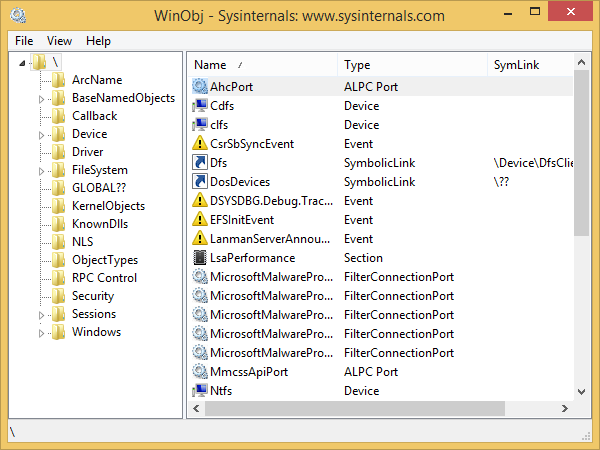 There are some interesting types in the list, but remember these types only have no security if they have no name, which would make it trickier to exploit. Also some like “Type” are unlikely to ever be accessible in a user mode process, but it’s still worthwhile pointing them out.
