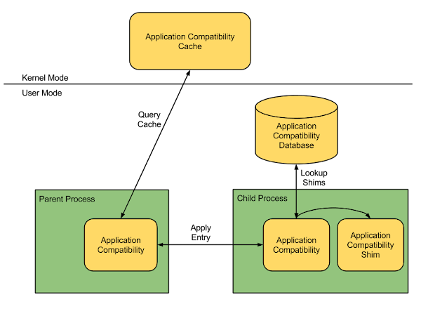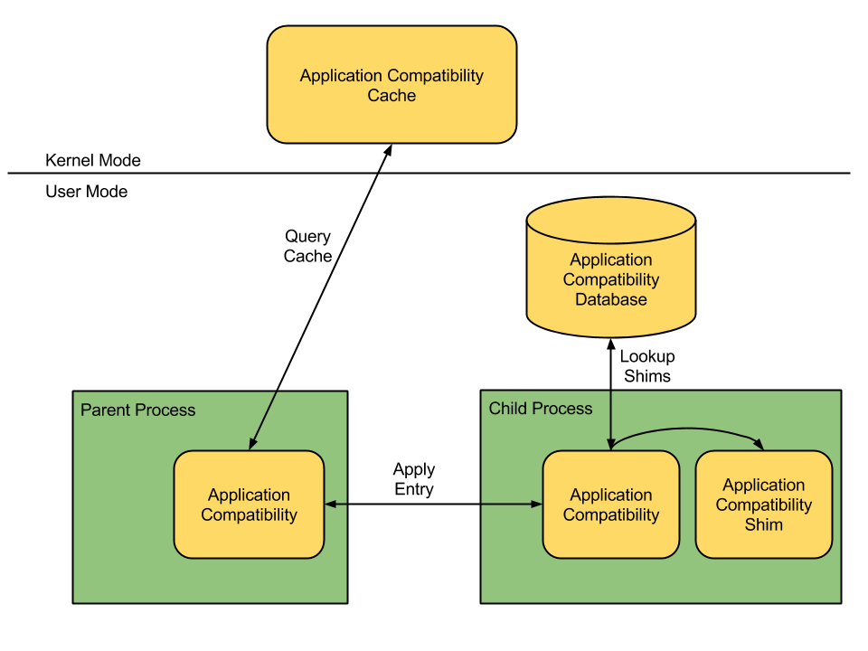 In order to improve upon the first PoC I would need to get a better understanding of what the system call is doing. The application compatibility cache is used to store the lookup data from the application compatibility database. This database contains rules which tell the application compatibility system what executables to apply “shims” to in order implement custom behaviours, such as lying about the operating system’s version number to circumvent an incorrect check. The lookup is made every time a process is created, if a suitable matching entry is found it’ll be applied to the new process. The new process will then lookup the shim data it needs to apply from the database.