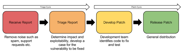 One of the biggest issues with vulnerability research on closed or proprietary systems is dealing with the actual reporting process to get a vulnerability fixed. This is especially the case in complex or non-obvious vulnerabilities. If the system is open source, I could develop a patch, submit it and it stands a chance of getting fixed. For a closed source system I will have to go through the process of reporting. To understand this better let’s think about what a typical large vendor might need to do when receiving external security vulnerability reports.