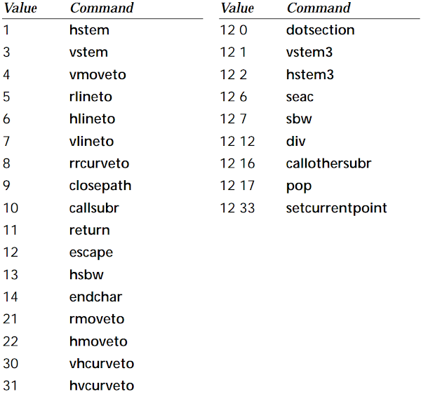 (source: Adobe Type 1 Font Format, Adobe Systems Inc.)