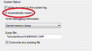 When it comes to detecting system bugchecks, we chose the easiest solution, instructing Windows to automatically restart when a critical system crash occurred: