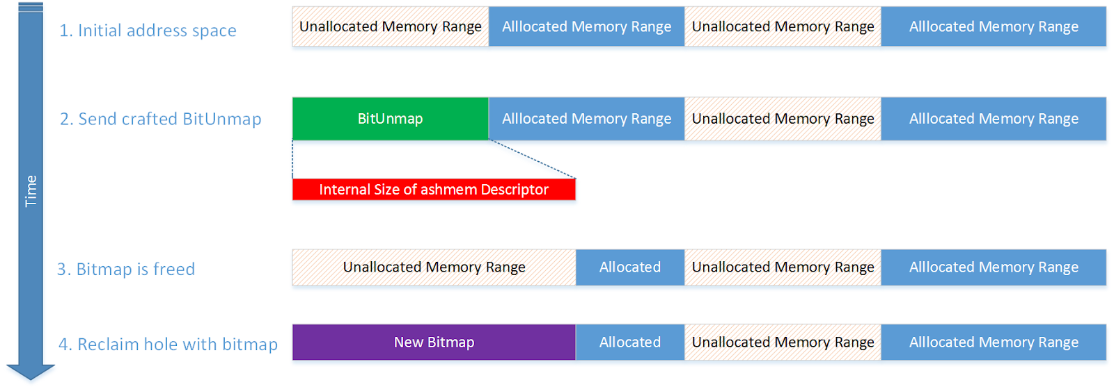 - Sending crafted BitUnmaps to delete memory ranges in the remote process