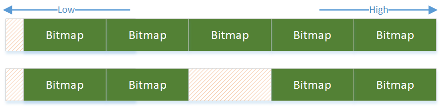 - Open up a hole in the middle of the consecutively allocated bitmaps