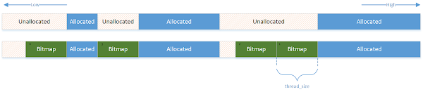 - Allocate many bitmaps of size thread_size to force consecutive allocations