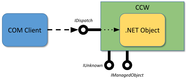 One thing developers perhaps don’t realize is that it’s not just the interfaces you specify which get exported from the .NET COM object but the runtime adds a number of “management” interfaces as well. This interfaces are implemented by wrapping the .NET object inside a COM Callable Wrapper (CCW).