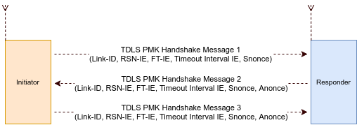 Next, the peers may wish to set up a connection. To do so, they must perform a 3-way handshake. This handshake serves a dual purpose; first, it indicates that a connection is successfully established between the two peers. Second, it’s used to derive the TDLS Peer Key (TPK), which secures the TDLS traffic between the peers.