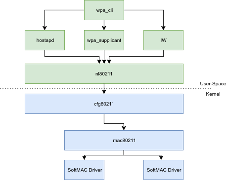 On the setup I’m using for the attack platform, I have a laptop running Ubuntu 16.04, and a TP-Link TL-WN722N dongle. The dongle is a SoftMAC configuration, so the MLME layer in play is the one present in the Linux kernel, namely, the “cfg80211” configuration layer.
