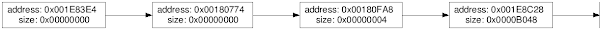 This is both a blessing and a curse. On the one hand, it means that the heap’s structure is highly consistent. In the seldom events that data structures are allocated, they are immediately freed thereafter, restoring the heap to its original state. On the other hand, it means that our degree of control over the heap’s structure is fairly limited. For the most part, whatever structure the heap has after the firmware’s initialisation, is what we’re going to have to work with (unless, of course, we find some primitive that will allow us to better shape the heap).
