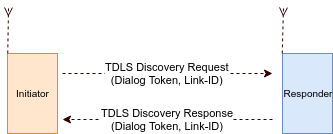 Before two peers can establish a connection, they must first know about the existence of one another. This is called the “discovery” phase. A Wi-Fi client that wishes to discover TDLS-capable peers on the network, can do so by sending a “TDLS Discovery Request” frame to a peer. A TDLS-capable peer that receives this frame, responds by sending a “TDLS Discovery Response” frame. The request and response are correlated to one another using a 1-byte “dialog token”.