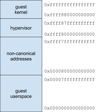 On x86-64, Xen PV guests share the virtual address space with the hypervisor. The coarse memory layout looks as follows: