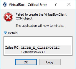 If we could replace the COM registration with our own code we should be able to get code execution inside the hardened process. In theory all the hardening signing checks should stop us from loading untrusted code. In research, it’s always worth trying something which you believe should fail just in case as sometimes you get a nice surprise. At minimum it’ll give you insight into how the protection really works. I registered a COM object to hijack the VirtualBoxClient class in the user’s hive and pointed it at an unsigned DLL (Full Disclosure, I used an admin account to tweak the Owner to TrustedInstaller just to test). When I tried to start a Virtual Machine I got the following dialog.