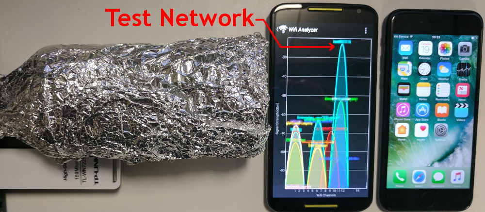 Anecdotally, scanning for nearby networks around my desk revealed around 60 Wi-Fi networks, causing quite a bit of noise (and frame loss). If you encounter the same issue, you can boost your RSSI by building a small cantenna and connecting it to your dongle: