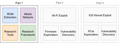 Since there’s much ground to cover, we’ve chosen to split the research into a three-part blog series. The first blog post will focus on exploring the Wi-Fi stack itself and developing the necessary research tools to explore it on the iPhone. In the second blog post, we’ll perform research into the Wi-Fi firmware, discover multiple vulnerabilities, and develop an exploit allowing attackers to execute arbitrary code on the Wi-Fi chip itself, requiring no user-interaction. Lastly, in the final blog post we’ll explore the iPhone’s host isolation mechanisms, research the ways in which the Wi-Fi chip interacts with the host, and develop a fully-fledged exploit allowing attackers to gain complete control over the iOS kernel over-the-air, requiring no user interaction.