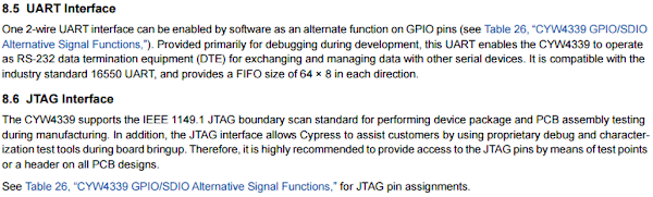 We could opt for a hardware-based research environment. Reviewing the data sheets for one of Broadcom’s Wi-Fi SoCs, BCM4339, reveals several interfaces through which the chip may be debugged, including UART and a JTAG interface.
