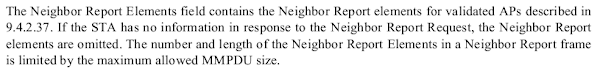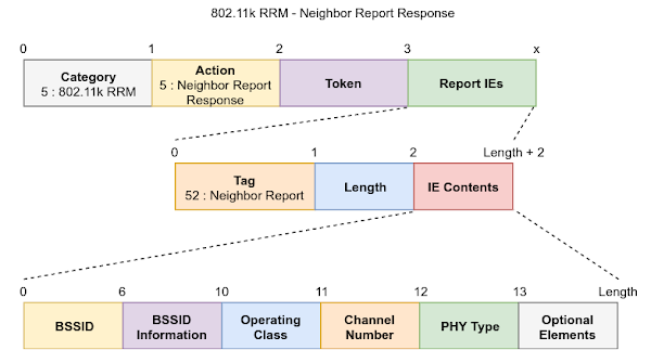 Consequently, NRREPs may be transmitted over the network to any client at any time, so long as it supports 802.11k RRM. Upon reception of such a report (with a zeroed dialog token), the client will simply parse the request and handle the data therein.
