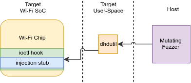 Before attempting a manual audit, we also “fuzzed” the action frame handlers. To do so, we developed an on-chip Wi-Fi fuzzer, allowing injection of frames directly into the aforementioned handler functions (without transmitting the frames over-the-air). While the fuzzer allowed for high-speed injection of frames (namely, thousands of frames per second), running it using a small corpus of action frames and inducing bit-flips in them was unfruitful... One possible explanation for this approach’s failure is due to the strict structure mandated by many action frames. Perhaps these results could be improved by fuzzing based on a grammar derived from the Wi-Fi standard, or enforcing structure constraints on the fuzzed content.