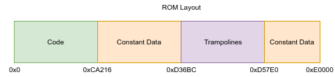 As for the ROM’s layout, it follows the same basic structure as that of its Android counterparts; beginning with a code chunk, followed by a blob of constant data (including strings and CRC polynomials), and ending with “trampolines” into detection points in the Wi-Fi firmware’s RAM (and some more spare data).