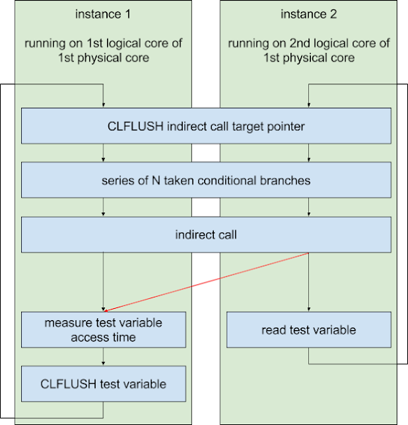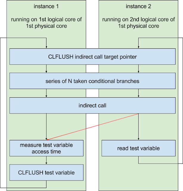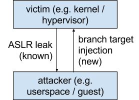 - http://www.cs.binghamton.edu/~dima/micro16.pdf and https://github.com/felixwilhelm/mario_baslr: Prior research by Dmitry Evtyushkin, Dmitry Ponomarev and Nael Abu-Ghazaleh on abusing branch target buffer behavior to leak addresses that we used as a starting point for analyzing the branch prediction of Haswell processors. Felix Wilhelm's research based on this provided the basic idea behind variant 2.