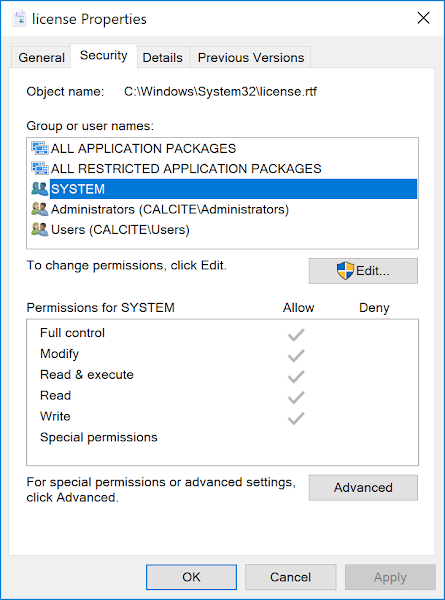 - Use the Storage Service vulnerability to change the security of the license.rtf file inside SYSTEM32.