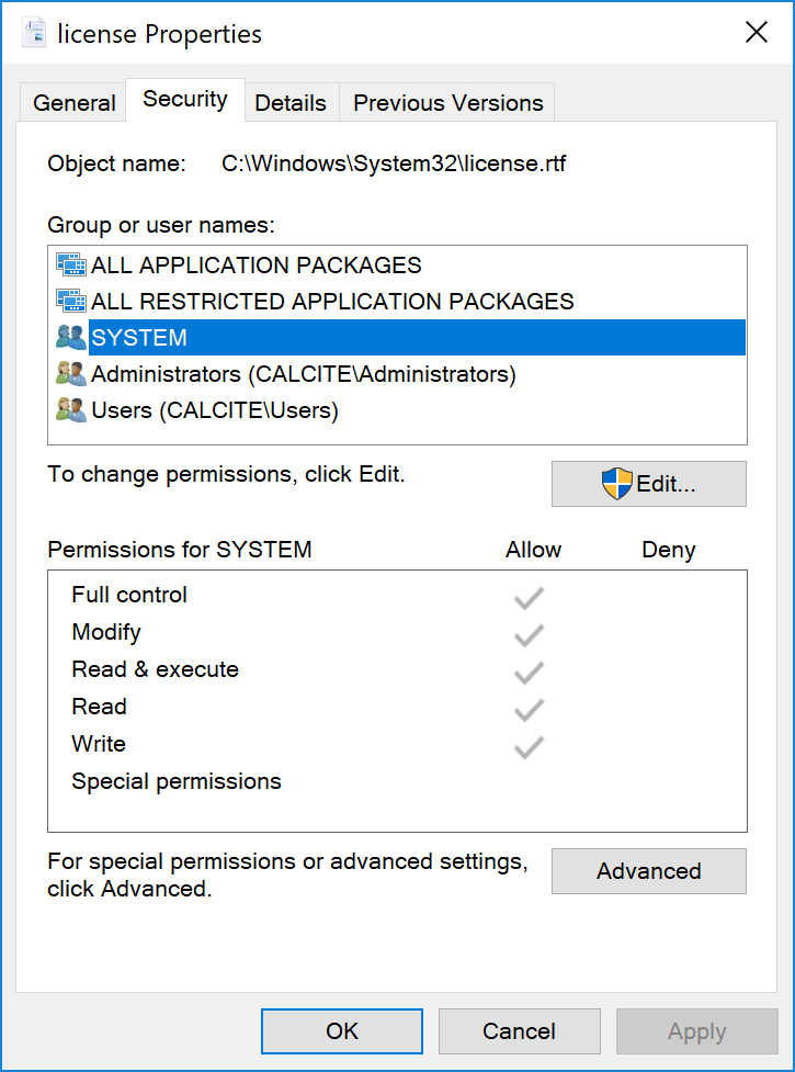 Looking through the list of files I decided to pick on the file license.rtf, which contains a short license statement for Windows. The advantage of this file is it’s very likely to be not be critical to the operation of the system and so overwriting it shouldn’t cause the installation to become corrupted.