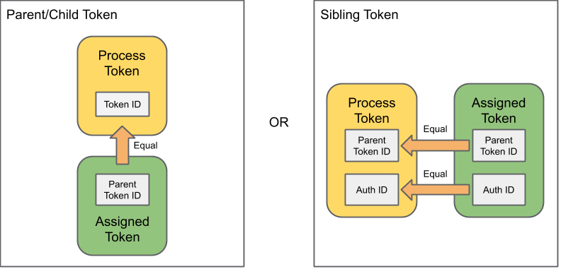 - A child of the current process token. Based on the new token’s Parent Token ID being equal to the Process Token’s ID.