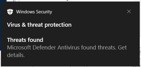 We create an EICAR file in the temporary folder. Once the file has been closed Windows Defender’s real-time scanner should scan it and warn the user that it has quarantined the file.