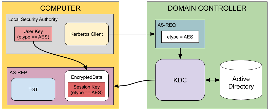 To say this is bad from a cryptographic standpoint, is an understatement. Fortunately it would be safe to assume that while this crypto system is implemented in CRYPTDLL, it wouldn't be used by Kerberos? Unfortunately not — it is totally accepted as a valid encryption type when sent in the AS-REQ to the KDC. The question then becomes how to exploit this behavior?