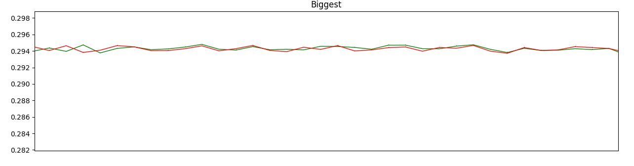 If we really zoom in on measurements from the "Biggest" core, we can see the two lines deviating due to the noise: