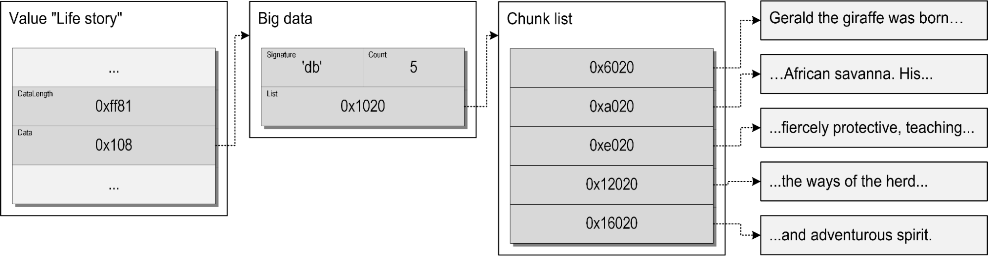 - Consistency between length markers in one cell vs. the amount of data stored in the corresponding backing buffer (e.g. _CM_KEY_VALUE.DataLength vs. length of the data stored in the raw data cell / big data cell).