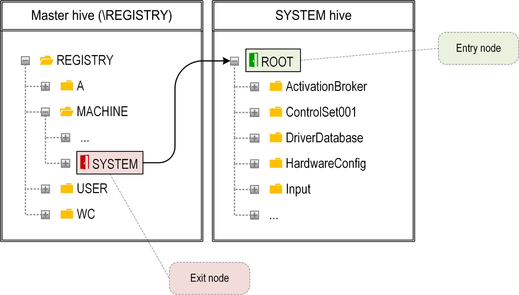 - Only the root of the hive, and no other key having the KEY_HIVE_ENTRY flag set.