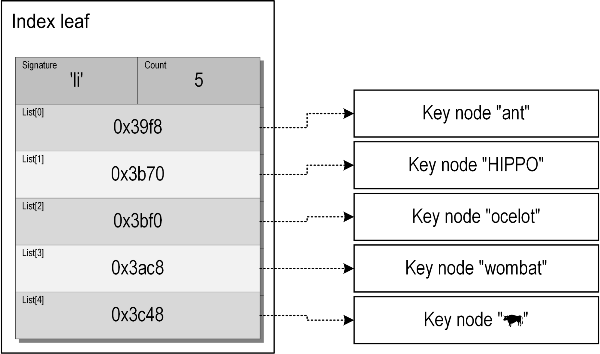 - 1.3: encodes volatile hives (the root hive, HKLM\HARDWARE), the BCD hive (HKLM\BCD00000000), the user classes hives (HKU\<SID>_Classes), and some application hives (backed by settings.dat).