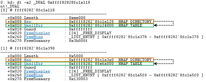 0: kd> dt _HMAP_ENTRY nt!_HMAP_ENTRY +0x000 BlockOffset : Uint8B +0x008 PermanentBinAddress : Uint8B +0x010 MemAlloc : Uint4B |
