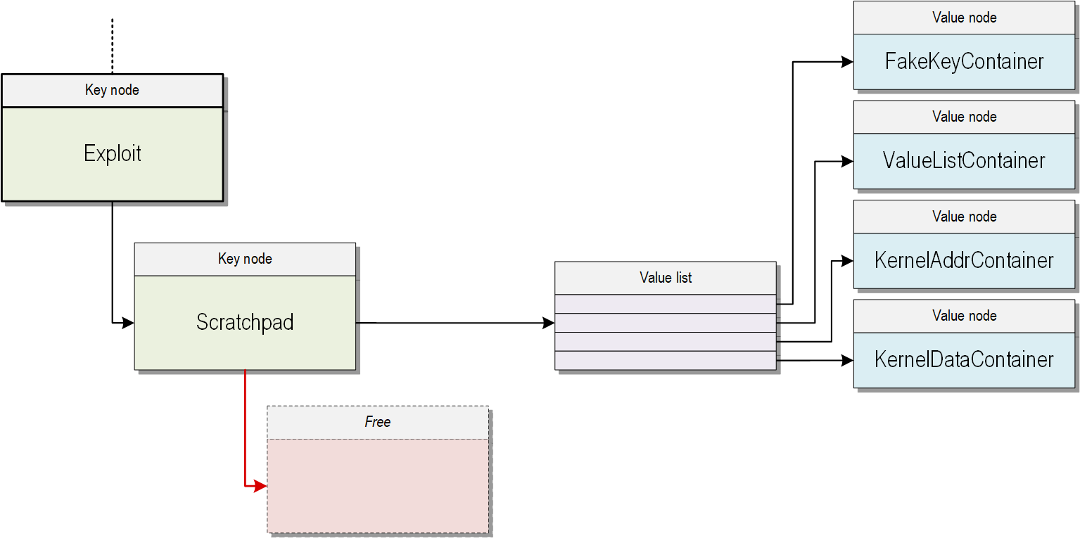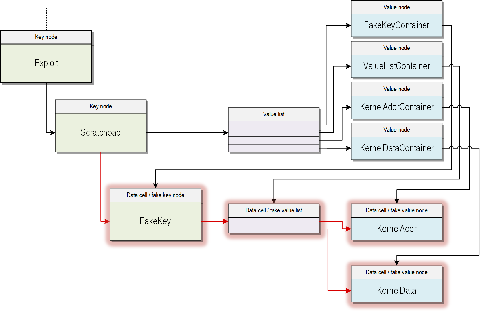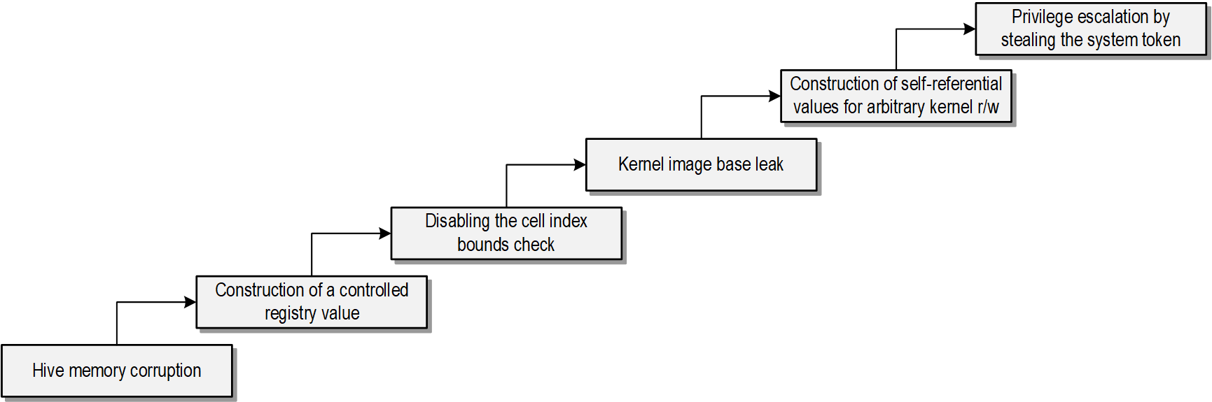 Does this mean that hive memory corruption is non-exploitable, and the only thing it allows for is data corruption in an isolated hive memory view? Not quite. In the following subsections, we will carefully consider various ideas of how taking control of the internal hive data can have a broader impact on the overall security of the system. Then, we will try to determine which of the available approaches is best suited for use in a real-world exploit.