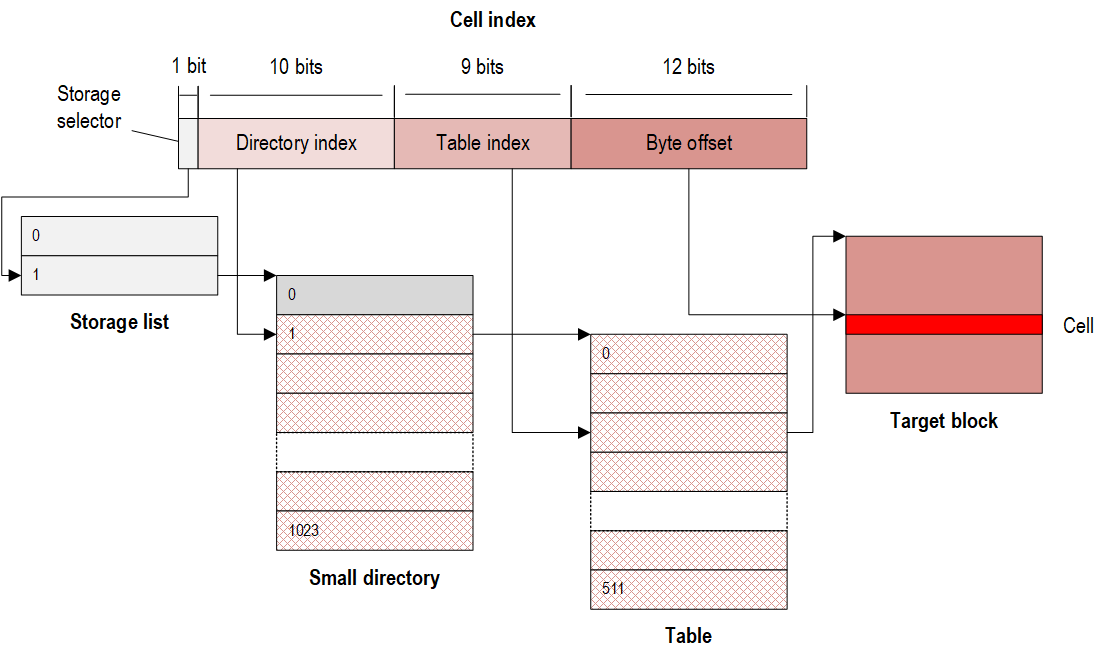 if (StorageIndex < Hive->Storage[StorageType].Length) { return &Hive->Storage[StorageType].Map ->Directory[(CellIndex >> 21) & 0x3FF] ->Table[(CellIndex >> 12) & 0x1FF]; } else { return NULL; } }